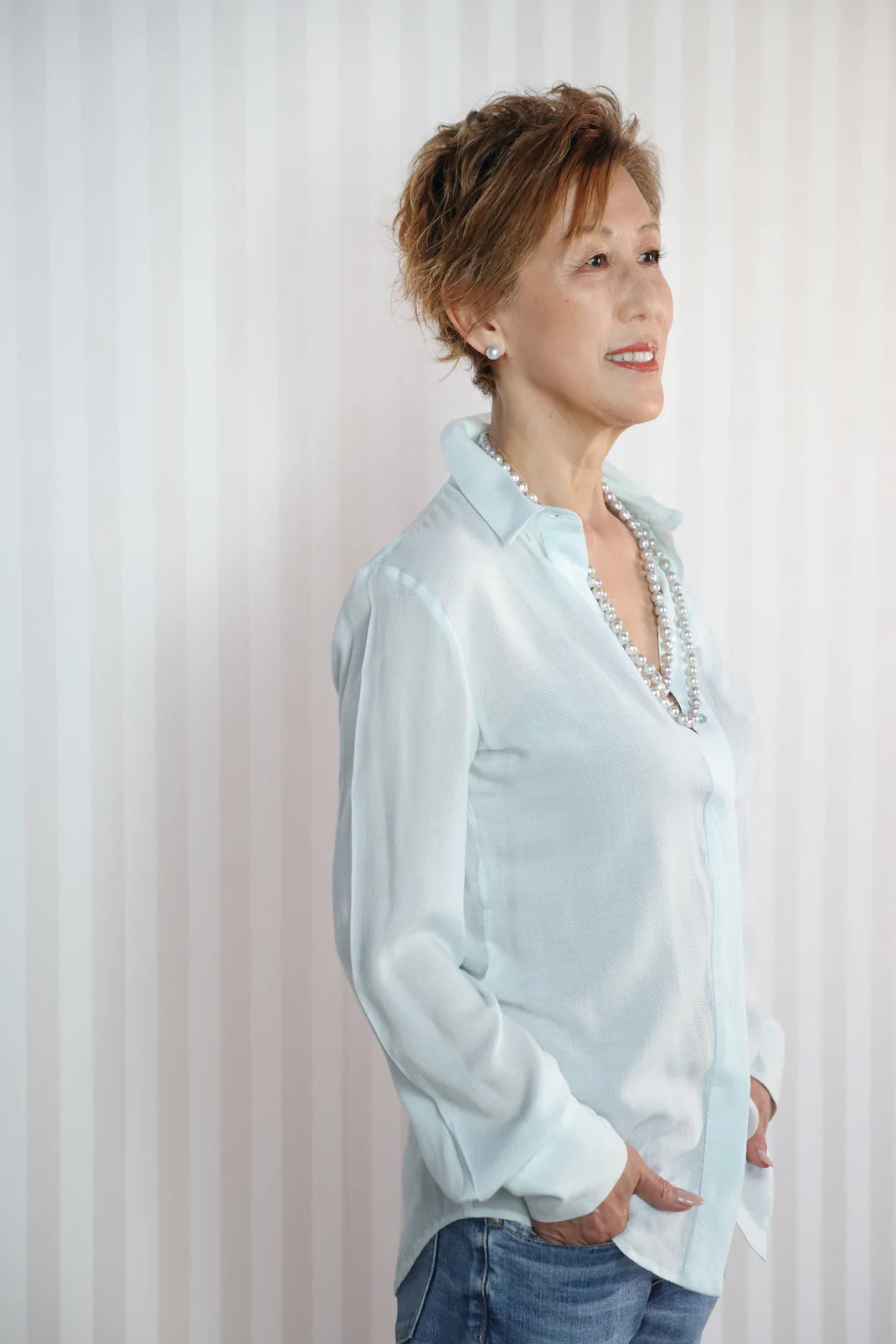 Tシャツにも合わせられ、「参観日」風にならない自由な真珠です。